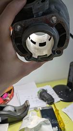cilindro Minarelli orizzontale alluminio arsial 50 con travertino cilindro ha circa 70 ore vendo perché ora ho montato il 70 cilindro senza guarnizioni. cilindro Perfetto con pochissime righe e segni d'usura pistone ha un po' di usura. io consiglio di comprare kit guarnizioni e pistone e poi dopo è perfetto come da ultima foto con €40 compri tutto. volendo si può montare anche con questo pistone