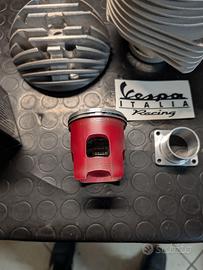 Vendo kit cilindro vespa Italia racing 187 per vespa px. Diametro 63,corsa 60 nativa, pistone wossner forgiato, cromatura eccellente, collettore di scarico smontabile doppio (uno un acciaio e uno in ergal). Completo di viteria e guarnizione. Il kit è paragonabile al nuovo, montato ed usato solo per un paio di pieni di miscela, meno di 300 km percorsi. Quindi il tutto è ancora da rodare. Le foto parlano da sole Astenersi perditempo e sognatori, qui la qualità c'è e si paga! Spedizione disponibile