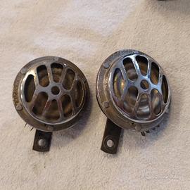 Clacson per Moto Guzzi. Erano gli originali sulla mia SP 1000 del 1982, marca Vox Bell, 12v. Li ho sostituiti da un paio di anni con trombe più potenti, e allora funzionavano, ma ora non posso garantirlo. Sempre conservati in scatola in garage asciutto.