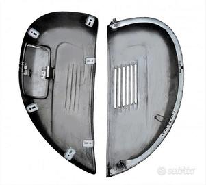 Coppia di scocche sacche bandoni laterali posteriori in ferro, nuovi originali per vespa d'epoca da verniciare del colore desiderato, nuovi di fabbrica