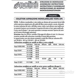 (R.16130) Vendo collettore aspirazione monolamellare nuovo per Piaggio Vespa 50 Special due tempi abbinabile al carburatore Polini CP D.17,5 cod. 201.1704. marchiato Polini motori con codice 2150117 , per istruzioni di montaggio e applicazioni vedere foto