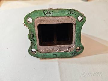 Collettore lamellare MRT 30 vespa small 50 special r l n ET3 , modificato per non toccare sul telaio, senza allargare foro pozzetto , con pacco doppia lamella cr85 in carbonio , imbocco lato carburatore 30mm maschio con manicotto .