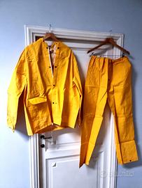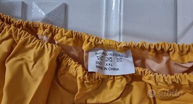 Vendo completi giacca e pantaloni impermeabili in PVC, colore giallo, taglia XXL. Perfetti per lavori all'aperto, protezione dalla pioggia per moto oppure per la barca. •Materiale: PVC resistente e impermeabile •Composizione: giacca con bottoni a pressione e tasca laterale, pantaloni con vestibilità comoda •Condizione: nuovi, ancora sigillati nella busta originale Prezzo: 15€