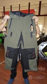 4 tasche frontali 2 tasche laterali inserti neri per l' abrasione ..Sezioni elasticizzati nelle ginocchia e interno coscia per maggior comfort di movimento ,,fodera interna per inverno .. Possibilità con la zip di trasformare il pantalone in bermuda ..