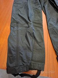 Salopette sia con cerniera che con velcro sul petto, cerniera su caviglia e protezione laterale destra.