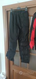 i pantaloni hanno elastico in vita e protezioni fisse su anche e ginocchio ,la giacca con protezioni gomito e spalle estraibili,prese d' aria sulla giacca e tasca per protezione schiena vendo completo a 120 euro