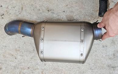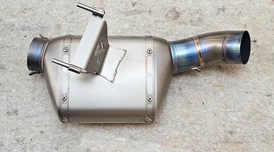 Vendo completo akrapovic in titanio per ktm 1290 1.0 e 2.0. Il completo è attualmente sulla moto. Ottimo stato. Andrebbe solo sostituito il fondello in carbonio. Si è cotto, è stato riparato ma non penso terrà. Lana di vetro appena sostituita nel bombolotto e nel terminale. Fornisco anche db killer e protezione per lo scarico, non presente in foto.