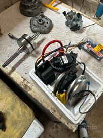 vendo componenti elaborati per blocco piaggio , in foto non sono riuscito a inquadrare tutto vendo -selettra team 2 mhr piaggio - 21phbg dell orto - albero motore stage six rt biella 85mm -basetta - rapporti 13/40 polini -carter motore , gas rapido , cinghia malossi , rulli mollette della frizione blu - ho andche marmitta originale aprilia sr factory , marmitta polini , marmitta arrow entrambe per (50/70 base) blocco originale piaggio aprilia sr perfettamente funzionante albero motore nuovo - ho anche carene e tanti altri pezzi info comtattatemi