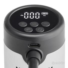Codice ricambio: S502 possibilità spedizione o ritiro in negozio Compressore a batteria ricaricabile tramite presa USB, utilizzabile anche come torcia di emergenza. Dotazione: • Display LCD con indicatore di pressione • Cavo per ricarica USB-C • Adattatore USB - USB-C • Tubo di collegamento da compressore a pneumatico con valvola standard (valvola americana) • Adattatori per gonfiare pneumatici con valvola francese • Adattatore ad ago per gonfiare palloni da calcio • Adattatore ad ago per accessori gonfiabili Caratteristiche: • Dimensioni: Ø53mm x 165mm • Tempo di ricarica: 3 ore • Corrente di ricarica: 6A Max 5V/2A • Batteria 5200mAh • Temperature di esercizio: da -10°C a 60°C • Pressioni di esercizio: max 10 BAR (150PSI) • Luce torcia di emergenza: 600lumen