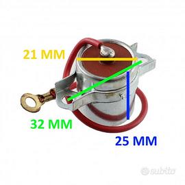 (R.14289) Vendo condensatore nuovo marca Icet con codice 5712 per Motobecane Mobylette M1 Cady dal 1968 impianto Novi con altezza 25 mm e diametro 21 mm con interasse fori 32 mm , per misure vedere foto