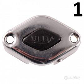 (R.20353) Vendo coperchio comando clacson nuovo in ferro cromato per ciclomotori vari vintagecon pulsante in plastica nero e con interasse fori fissaggio da 35 mm , il prezzo si intende per singolo pezzo , per misure vedere foto , disponibili più modelli :