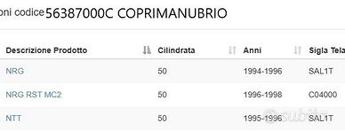 Codice ricambio: 563870000C COPERCHIO MANUBRIO INTERNO ORIGINALE 563870000C PIAGGIO NRG RST MC2 NUOVO VEDI TABELLA PER MODELLI