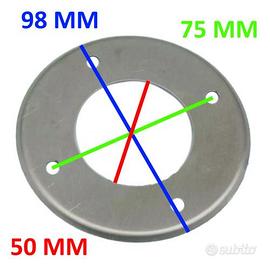 (R.23004) Vendo coperchio para polvere del volano nuovo in alluminio per Piaggio Vespa 50 prima serie del 1963 e 1964 , circonferenza interna di 50 mm circonferenza esterna di 98 mm e interasse tra i fori di 75 mm , per misure vedere foto