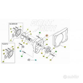 (R.20191) Vendo coperchio pompa acqua usato originale con albero pompa acqua per Aprilia SR 50 con motore Franco Morini Ditech con codice Aprilia AP3LZA000023 , per spaccato vedere foto , disponibili più modelli: