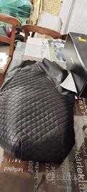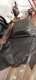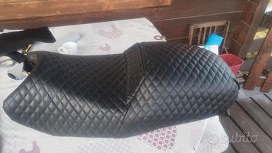 Vendo copertura sella in similpelle trapuntata artigianale, da montare direttamente sopra una sella unica. Era montata su un Suzuki bandit 1200, mai compatibile anche su un 600 e probabilmente con altre moto dello stesso tipo con una sella a due posti unica. La pelle trapuntata non è perfettamente impermeabile, perciò l'ideale sarebbe montare la copertura della sella direttamente sopra la vecchia sella, in modo che, in caso di pioggia, non succeda nulla. Io l'ho usata per una stagione e ho preso moltissima pioggia, la sella sottostante non si è rovinata e comunque si asciuga subito. Se siete pratici il lavoro potete farvelo da soli con la pistola spara punte, altrimenti dovete rivolgervi a un tappezziere. La sella è artigianale e faceva la sua porca e tamarra figura, come si vede dalla prima sua configurazione , poi snellita ai fianchi con della similpelle più liscia. Copertura sella, non c'è la sella intera! Per amatori. Prezzo trattabile.