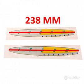 (R.21118) Vendo coppia adesivi resinati nuovi per fianco laterale posteriore destro e sinistro con scritta "STORM" di colore verde con lunghezza 238 mm per Gilera Storm 50 cc con codice Gilera 298377 o 298762 per applicazioni con misure e spaccato vedere foto