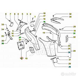 (R.20877) Vendo adesivo sinistro e destro del scudo anteriore nuovo con scritta "LIQUID COOLED" per Piaggio NRG RST MC2 dal 1996 al 1998 con codice Piaggio 574337 , per applicazioni e spaccato vedere foto , il prezzo si intende per la coppia