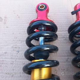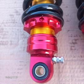 ammortizzatori nuovi a gas regolabili . Per quad , carrelli o moto o altro. sono lunghi 29 cm gli occhielli hanno un diametro di 10 mm.