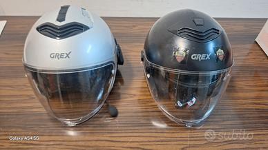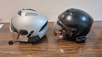 Entrambi hanno doppia visiera e sono dotati di interfono "midland btx2 pro s" con triplice funzionalità "radio" "interfono" "telefono".