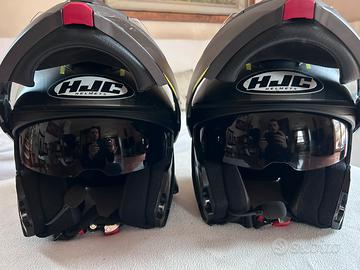 Coppia di caschi Modulari modello I90 di HJC colore nero con decori fluo.
