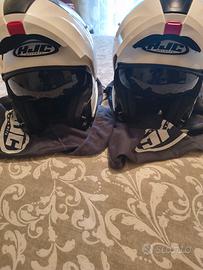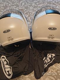 coppia caschi modulari hjc colore bianco perla perfetti. sono stati usati neanche 5 volte. taglia s / m