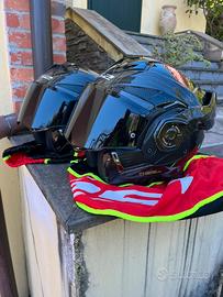 Vendo 2 caschi nuovi mai usati, LS2 CARBON X advant. Modulari e totalmente sfoderabili, die visiere (nera e trasparente) 2 zaini porta casco e 2 sacche originali. I caschi sono in carbonio, leggerissimi e molto comodi. Taglie M e S. Si vende solo la coppia ad un prezzo eccezionale. Per info 3392987244