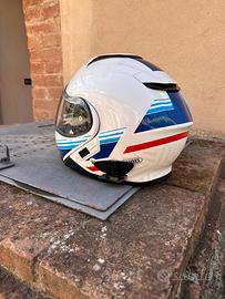 Il casco colorato blue e rosso prestata una sola piccola botta nel dietro del casco, invece nel bianco L adesivo shoei si è leggermente rimosso.