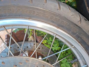 vendo in ottime condizioni sia estetiche che funzionali coppia di cerchia a raggi completi di pneumatici e dischi freno . Compatibili solo con bmw r850r e r1100r dal 94 al 2002. misure anteriore 18 posteriore 17. le foto originali dei cerchi esattamente in vendita. spedizione inclusa