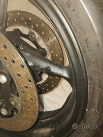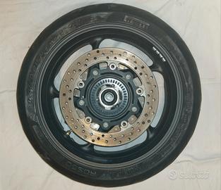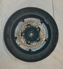 Vendo coppia di cerchi originali per Yamaha TMAX 530. I cerchi sono in ottime condizioni dritti e senza colpi. Dettagli: Anteriore: Completo di doppio disco freno nota: presentano ruggine superficiale come da foto. Gomma Pirelli Diablo Rosso Scooter (Misura 120/70 R15), DOT 5021, battistrada buono. Posteriore: Completo di disco singolo, ruota fonica ABS e mozzo di trascinamento trasmissione a cinghia. Gomma Bridgestone Battlax (Misura 160/60 R15), DOT 2317. Si tratta di ricambi usati ma in ottime condizioni, Modalità visto e piaciuto. Solo ritiro a mano.