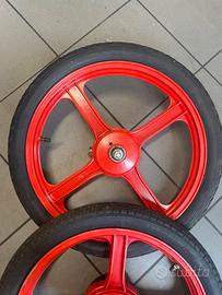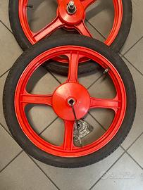 cerchi in lega a 4 razze originali Piaggio, specifici per ciclomotori d'epoca come il Piaggio Ciao Teen, il Si e il Bravo.