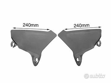 Coppia deflettori aria laterali realizzati utilizzando plexiglass PMMA di alta qualit, omologato DOT626 spessore 4mm. Realizzato seguendo le pi strette norme in termini di sicurezza e rispettando il know-how, che ne garantisce la massima resistenza e trasparenza. Grazie a questi deflettori laterali sarete pi riparati dall'aria durante la guida, anche per aumentare il comfort del passeggero. Il design, studiato nel dettaglio, si sposa perfettamente alla linea della moto, regalandole un aspetto ancora pi accattivante.