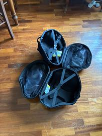 Nuove praticamente mai usate. Purtroppo mio malgrado ho dovuto cambiare moto e questi bauli mi sono stati regalati ma usati solo una volta, nell'imballaggio originale. Capienza Lt. 20 cadauna, Lt. 40 la coppia