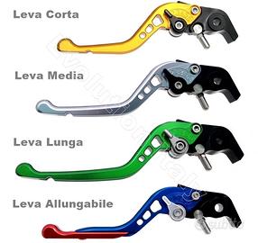 Le leve racing sono in lega d'alluminio anodizzato ricavate dal pieno. I colori disponibili di leve e regolatori sono: arancione, blu, nero, oro, rosso, silver, titanio e verde. Le leve possono essere personalizzate con marcatura attraverso Laser a Fibra e anodizzazione. Compatibili con: rsv4 tuono falco sl 1000 rst 1000 futura shiver dorsoduro rx125 rs125 rs250 pegaso srv850 r160 tnt 899 1130 Tornado r1200 gs k1200 k1300 k1600 m1000rr s1000rr f900 f850 f800 f750 f650 c600 c650 hp2 xb9 xb12 x1 s1 m1 m2 cyclone 1125 raptor 125 650 1000 desert x monster 400 m400 600 m600 620 m620 620ss 695 696 748 749 750m 750 m750ie 750ss 796 800 800ss 900 900ss 916 996 998 999 m1000 1000ss m1100 s2r s4 s4r st st2 st3 st4 sport 1000 supersport gt paul smart le 848 899 959 1098 1198 1199 1299 v4 v4s v4r panigale multistrada diavel carbon hypermotard 796 821 1100 streetfighter hornet 600 900 cbr600 f2 f3 f4 cbr600rr cb cb750 vfr vfr750 vfr800 vfr1200 cbr900 cbr929 cbr954 1000f cb1000r cbr 1000rr vtr vtr1000f firestorm vtr1000 sp1 sp2 rc51 xl1000 rvt1000 1100xx x11 nc700 cbr250 cbf cbf600 integra cbf1000 crossrunner crosstourer 1200 zx ninja 250 300 400 636 zxr400 er6 versys zx6 zx636 zx7 zx9 zx10 zr750 zephyr Z z125 z400 z650 z750 z800 z1000 h2 z rc8 1190 690 rc 125 200 390 790 duke 990 superduke griso nevada breva v7 v10 v11 norge bellagio stelvio corsaro granpasso 910 920 990 1078 1090 veloce brutale rr rivale f3 675 800 ago rc amg f4 rgv 250 gsr gsxr gsxf bandit gsx 650f gsx1250 gsx1300 gsz1400 dl tl dl1000 tl1000 vstorm burgman sv sv650 sv1000 sfv650 gladius hayabusa nuda smr speed street triple 955 1050 speed four 675 tt600 daytona speedmaster bonneville thruxton scrambler tiger sprint rocket trident 660 yp400 majesty xp500 tmax 530 560 xsr xt660 tt r1 r6 fzs 600 r1m fazer fz1 fz8 fz7 fz6 xj6 mt01 mt07 mt09 mt10 vmax gp800 hornet cbr600 cbr 900 cbr1000 cb1000 cbr929 cbr954 R1 R6