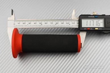 Coppia di manopole in gomma e schiuma con diametro interno 22 mm sul lato sinistro e 24 mm sul lato acceleratore.