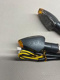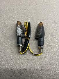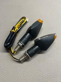 Coppia di indicatori di direzione (frecce) a LED universali per motocicli, nuove e mai montate. Design moderno a punta di freccia con scocca nera e lente trasparente/fumé. Compatibilità: Universale (12V) per moto Naked, Sportive, Enduro, Motard, Custom e Scooter. Tecnologia: LED ad alta intensità (basso consumo). Materiale: ABS ad alta resistenza con gambo flessibile anti-rottura (vibrazioni). Montaggio: Facile installazione con perno filettato M10. Cablaggio: 2 fili (Positivo/Negativo) pronti al montaggio. Note per l'installazione: Trattandosi di frecce a LED, se la vostra moto monta originariamente lampadine alogene, potrebbe essere necessario l'uso di resistenze o di un relè specifico per regolare la velocità di lampeggio.