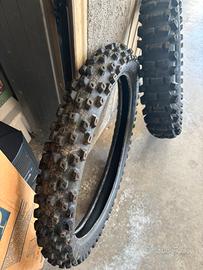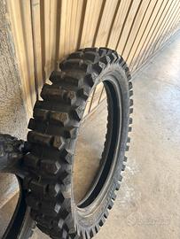 Vendo coppia (treno) di pneumatici da Motocross / Enduro usati, marca Dunlop Geomax. • Anteriore: MX52F misura 80/100-21 (ottimo stato, ha ancora la riga verde). • Posteriore: misura 120/90-18 (tasselli un po' arrotondati ma ancora buonissima per allenamento/boschi). Ideali per chi vuole girare al campetto o in mulattiera spendendo niente. Vendo SOLO in coppia a 35€ totali per liberare il box.
