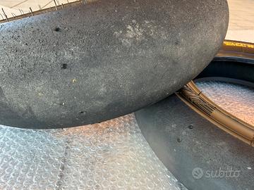 Vendo Coppia gomme PMT SS 10 pollici, 100/85-R10 e 120/80-R10 utilizzate un weekend di gara con Minigp Ohvale, condizioni buone come da foto.