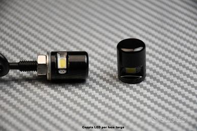 Coppia di LED per luce. Montata su vite in M5 per un montaggio discreto direttamente sulla targa della tua moto.
