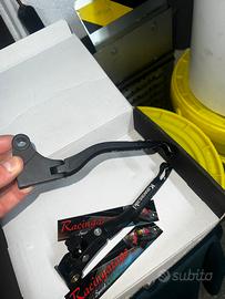 Materiale: Ergal 7075 t6 Accoppiamenti in acciaio al cromo molibdeno Caratteristiche tecniche: Interamente ricavate dal pieno tramite lavorazione CNC Ossidazione anodica dura Incisione personalizzata al laser (indelebile) Ergonomia modificata per aumentare comfort e performance Possibilità di variare la lunghezza della leva Parte terminale disponibile in 4 colori Regolazioni: Regolazione micrometrica della distanza della leva tramite registro sulla leva o controllo remoto Regolazione della lunghezza della leva per trasformarla in corta o lunga.