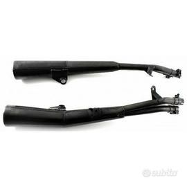 (R.8572) Vendo kit scarico nuovo sinistro e destro Mach Hokasuya per Yamaha FZ750 del 1985 marchiato CM-28 cromato nero completo di fascette con codice Y/2027/NC o Y2027NC e imbocco curve scarico da 35 mm , per misure vedere foto