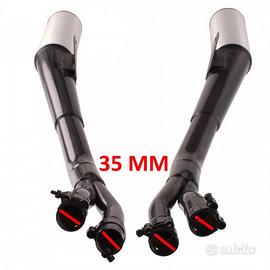 (R.19006) Vendo coppia scarichi nuovi non omologati probabilmente per Kawasaki GPX 750 R marchiati Marving Mach CTK 500 con codice K/6500/NB di colore nero e alluminio con diametro interno imbocco 35 mm e distanza da imbocco esterno a foro staffa 710 mm , fondi di magazzino con leggeri segni di magazzinaggio , il prezzo si intende per la coppia , per misure vedere foto