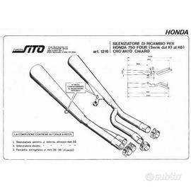 (R.8596) Vendo kit scarico sinistro e destro Sito nuovo per Honda CB750 Four K1 e K6 marchiata Silencers Sito DGM 39777 S con scritta Sito TPSI 2977 cromato completo di fascette con codice 1216 , per misure ed esploso vedere foto