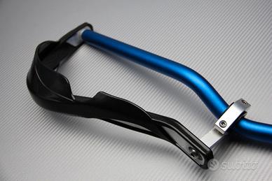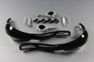 Coppia di protezioni in alluminio e plastica al livello dei comandi freni e frizione. Base in alluminio e rivestimento in plastica molto rigida per una resistenza ottimale.