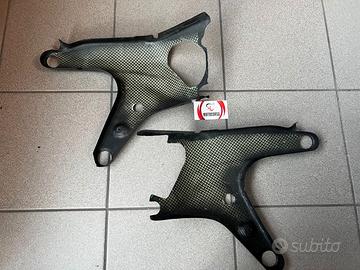 Coppia protezioni telaio destra e sinistra in carbonio adatte per Ducati Panigale V4 (tutte le versioni) fino al 2024. Ricambio usato, già sagomato per visionare il numero di telaio della moto. Rifinitura lucida. Escluse spese di spedizione.