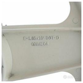 (R.12586) Vendo coppia cerchi ruota anteriore e posteriore senza piatto portaceppi usati per ciclomotori vari vintage tipo tuboni come Malaguti Fifty originali epoca marchiati Grimeca con misure anteriore 1.60 x 16 e posteriore 1.85 x 16 di colore panna con freno anteriore a disco e corona posteriore da 30 denti , il prezzo si intende alla coppia , per misure vedere foto
