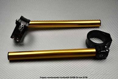 Kit bracciali + Tubi semimanubri inclinabili progettati per il montaggio su moto equipaggiate di tubi forcella con diametro 54 mm.