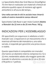 Vendo quanto in oggetto, diametro specchio 75mm, versione per manubrio 22mm. Per caratteristiche complete vedi foto. Gli oggetti sono nuovi e nella scatola originale, mai utilizzati. Vendo per errato acquisto.