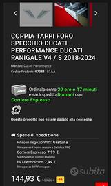 Coppia Tappi Foro Specchio Ducati Performance Panigale V4 / V4S 2018 - 2024, utilizzati pochissimo. Perfetti.