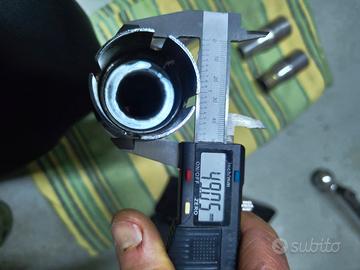 vendo coppia di terminali custom universali non omologati per moto custom. acquistati e mai montati. misure: lunghezza 42 cm , imbocco 4,9 cm. completi di staffa dritta da forare a piacimento. Corredo di due riduttori per imbocchi da 3,3 cm fatti fare artigianalmente.