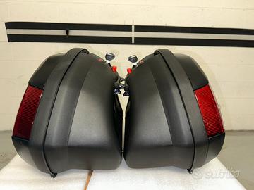 Vendo Coppia di Valige Givi Monokey V35 NUOVE nere goffrate con cattaddiotti Rossi. Le valige dono nuove e mai usate come si vede dalle foto anno ancora il doppione delle chiavi attaccate all’interno , inoltre c’è anche la busta fornita dalla Givi con blocchetto Monokey come ricambio completo con chiave di ricambio in caso di rottura.Contattarmi solo se veramente interessati ,no perditempo.Posso fornire a parte a chi interessasse il Telaietto Givi PLX per montaggio su Honda CB500x .Per ulteriori info contsttarmi sul cell. 3393198374